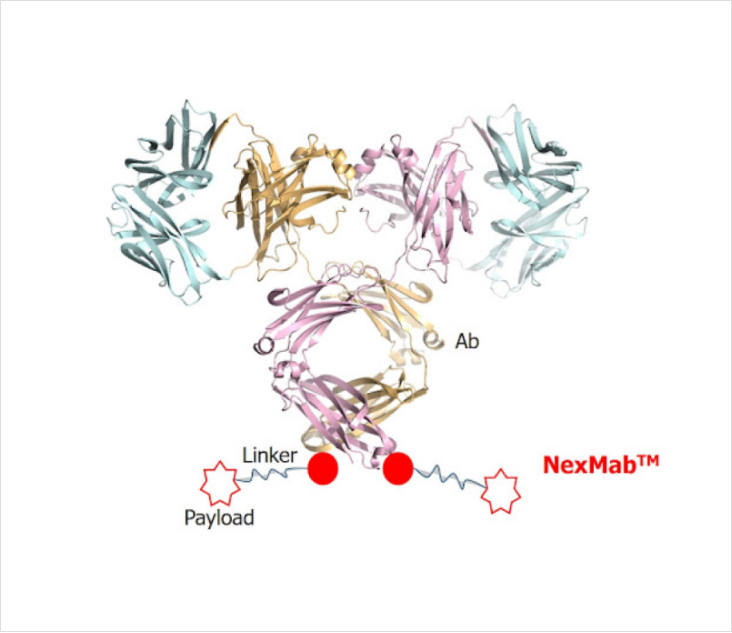 이를 극복하기 위해 많은 제약회사들이 위치 특이적 접합방식에 기반한 차세대 약물 접합 방식을 개발하기 위해 노력하고 있습니다. 이 중 ㈜알테오젠의 NexMab™ ADC 기술은 위치 특이적 접합 방식에 의한 약물의 접합을 유전자재조합 기술을 통해 구현함으로써 보다 우월한 안정성과 효력, 그리고 경제성을 지닌 2세대 ADC 치료제의 제작이 가능합니다.